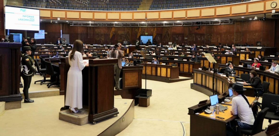 La presidenta del Tribunal Contencioso Electoral (TCE), abg. Ivonne Coloma, presentó ante la Asamblea Nacional el Informe de Labores 2025, acompañada de los jueces principales del Tribunal, destacando una gestión orientada a garantizar una justicia electoral oportuna, sin rezagos y con resultados verificables, en cumplimiento del principio de rendición de cuentas.